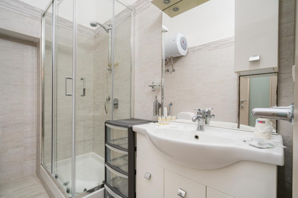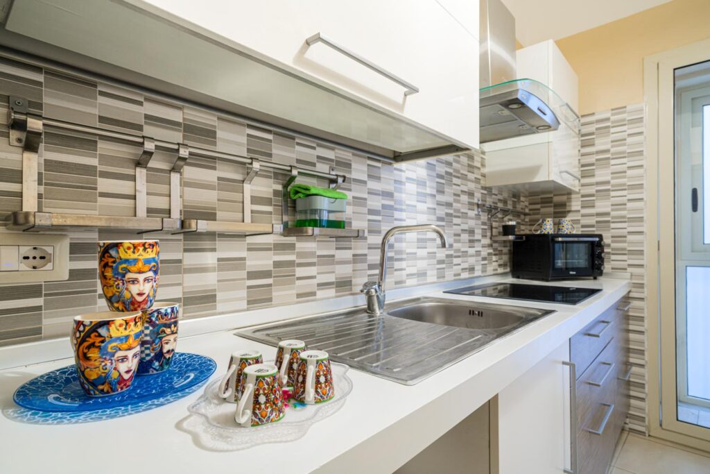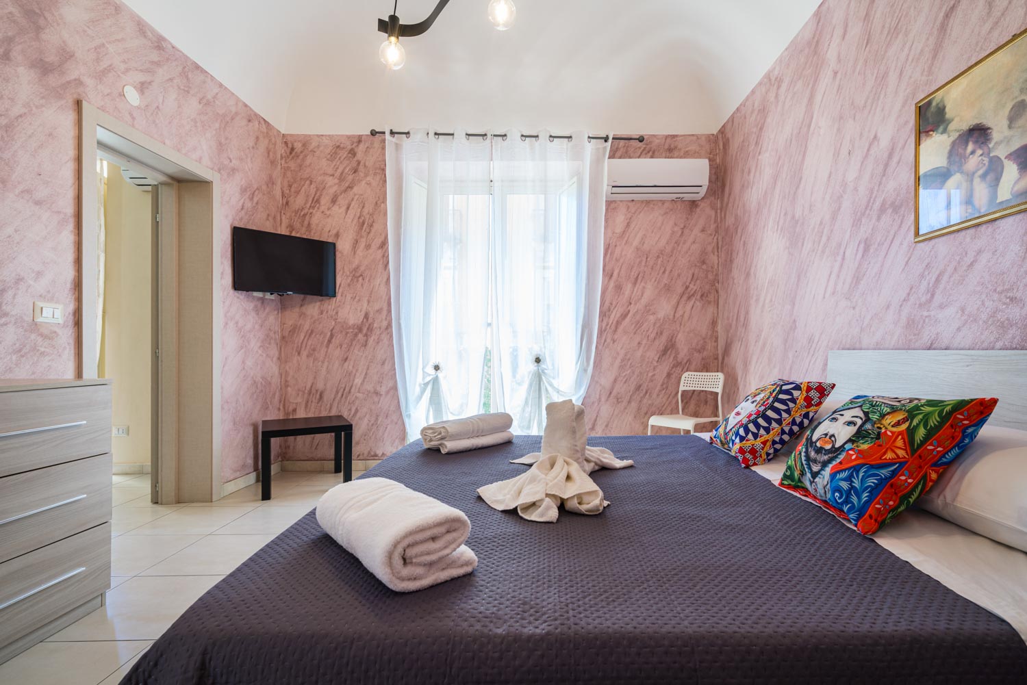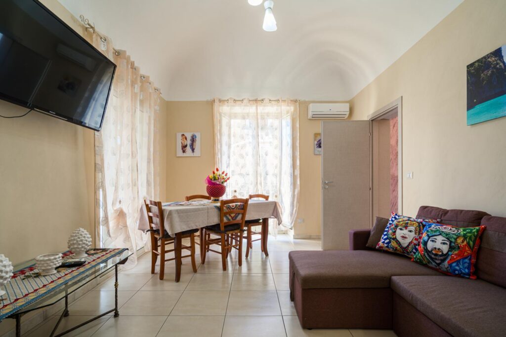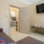 - Amenities: Private apartment in a building, Air conditioning, Wardrobe or closet, Hairdryer, Towels, Balcony, Bidet, Electric kettle, Toilet paper, Child safety socket covers, Kitchen, Sofa, Sofa bed, Iron and ironing board, Oven, Microwave oven, Fridge, Independent entrance, Washing machine, Coffee machine, No fumatori, Marble or tiled floor, Hob, Electrical socket near the bed, Complimentary toiletries, Cleaning products, Heating, Clothes rack, Clothesline, Trouser press, Dining table, Flat screen TV, Cooking utensils, Bath or shower, WC, Dining area, Living area